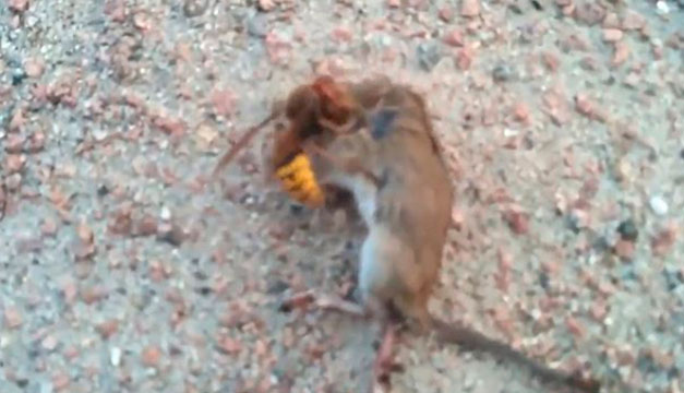 El video, calificado por algunos internautas como "horrible", se ha vuelto viral y es que causa asombro ver cómo el ratón de mayor tamaño que el avispón, es neutralizado por este.