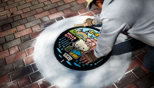 Tama City, ciudad de la periferia occidental de Tokio, eligió por su parte un icono más reciente: la gata Hello Kitty. El personaje japonés adorna 10 tapas de alcantarilla instaladas a proximidad de un parque de atracciones para niños.