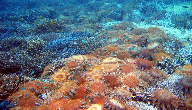 Una insaciable especie de estrella de mar espinosa amenaza la pervivencia de los corales que desde hace años devora sin control.