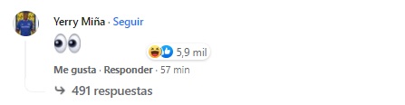El comentario de Yerry recibió más de 5 mil reacciones entre "me gusta" y "me divierte" y comentarios diciéndole al jugador "Baila ahora" y otros citando un GIF del portero Emiliano Martínez quien le paró el lanzamiento de penal en la semifinal de la Copa América 2021, que terminó ganando la albiceleste.