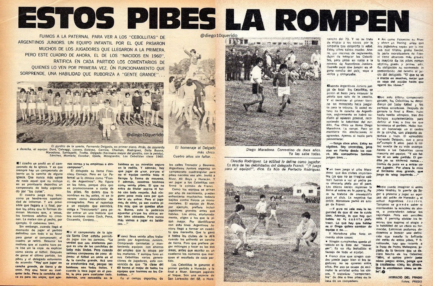 La historia de cómo surgió aquella cobertura fue revelada por Ernesto Cherquis Bialo, entonces subdirector de la publicación, quien recordó que Héctor Vega Onesime, director editorial, dijo durante una cena de sumario: "Y habrá que ir a ver al pibe ese”. La nota se tituló: “Estos piben la rompen”.