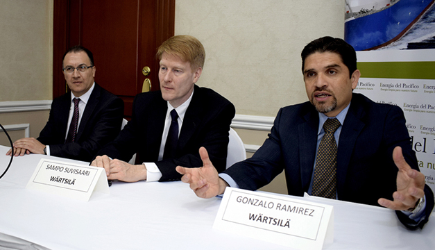 Alejandro Alle, director ejecutivo de EDP, junto con Sampo Suvisaari y Gonzalo Ramírez, de Wärtsilä, compartieron avances de la construcción de la planta de GNL. / Diego García