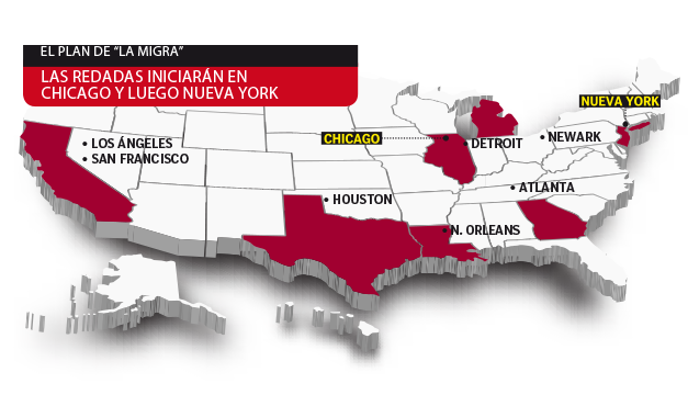 La publicación de La Opinión que retoma una publicación The New York Times, dos funcionarios que conocen el operativo secreto, señalaron que los agentes especiales serán enviados primero a Nueva York y Chicago, pero después a San Francisco, Los Ángeles, Atlanta, Houston, Boston, Nueva Orleans, Detroit y Newark (Nueva Jersey).