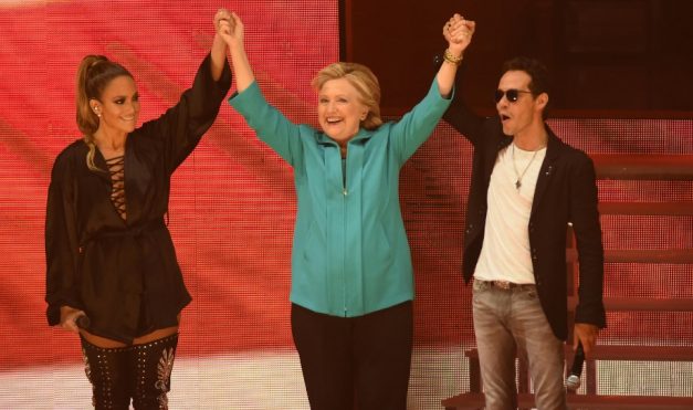Clinton apareció en el escenario del anfiteatro del Bayfront Park de Miami casi al final de un concierto en el que también cantaron el salsero Marc Anthony, exesposo de Jennifer López, y el grupo cubano de reguetón Gente de Zona, que puso al público a bailar con su popular La Gozadera.