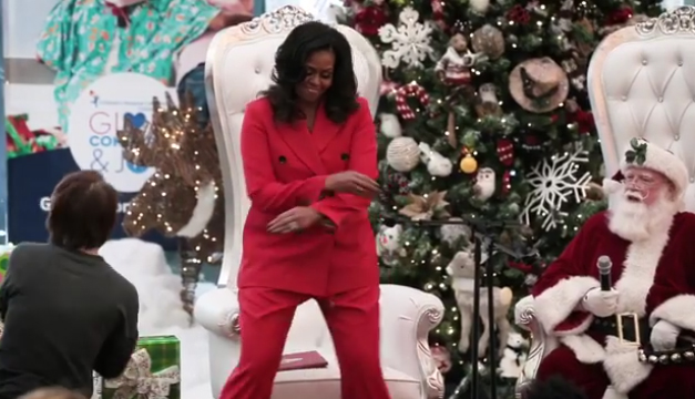 Una joven retó en baile a la esposa de Barack Obama , y ella no se negó y sorprendió a los asistentes moviéndose al ritmo del popular baile de “justicia naranja” del videojuego Fortnite, incluso motivó a Santa Claus a que se siguiera la coreografía.