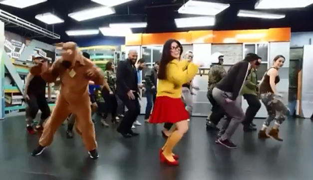 Entre ellos, se encuentran los presentadores Irene Castillo, Larissa Graniello y El turrón bailando una coreografía acompañados de una persona vestida como el personaje de la serie televisiva “Scooby Doo”, así como de sus demás compañeros.
