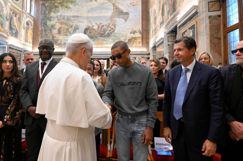 Escena El papa saluda a Pharrell Williams en la víspera del "macroconcierto" vaticano viernes 12, septiembre 2025 - 6:59 p. m.