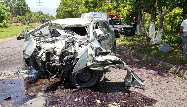 Un accidente de tránsito en la carretera de Aguilares hacia El Paisnal ha dejado tres personas lesionadas, una de ellas un menor de aproximadamente tres años de edad.