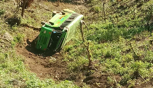 Un autobús de la ruta 737 que hace su recorrido entre el cantón Piedra Parada, en Chilanga, y San Francisco Gotera, en el departamento de Morazán, se precipitó en una barranca, a tempranas horas de este viernes.