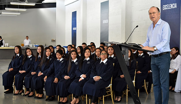 “Nos llena de mucho orgullo atestiguar cómo a lo largo de este proceso, los estudiantes han crecido académica y personalmente. El 72 % de los alumnos que se gradúa hoy, seguirá con sus estudios superiores, ya sean técnicos o universitarios, mientras que el 28 % ya están trabajando”, indicó el empresario.