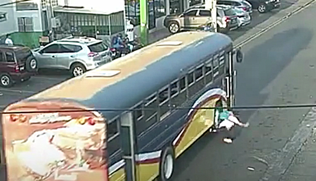 “El peatón quizo abordarlo sin ser parada de buses. Al momento que quiere abordarlo se cae y le pasan las llanta traseras”, describió a Diario EL MUNDO Adín Cruz, jefe de tránsito terrestre de la Policía Nacional Civil en San Miguel. “Se puede observar que no es una parada autorizada”, dice el oficial respecto al video.