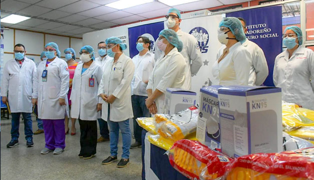Como parte de las acciones para brindar protección al personal médico de la red hospitalaria del país, hoy el gobierno salvadoreño entregó equipo de bioseguridad al Hospital Médico Quirúrgico y Oncológico del Instituto Salvadoreño del Seguro Social (ISS).