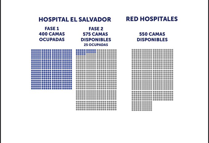 La fase I del hospital El Salvador, antes Centro Internacional de Ferias y Convenciones, fue inaugurada el 21 de junio sin presencia de la prensa y tiene 400 camas: 105 Unidades de Cuidados Intensivos (UCI) y 295 Unidades de Cuidados Intermedios (UCIN).