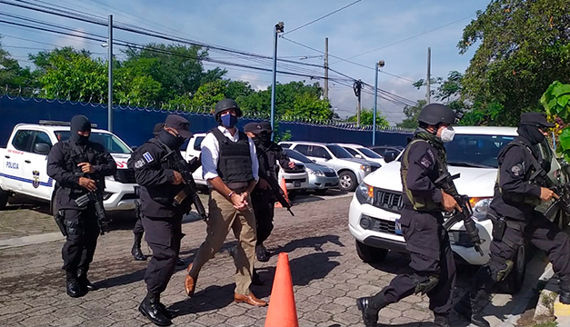 A su salida del juzgado, fue capturado por la Policía Nacional Civil, por el nuevo proceso que fue judicializado ayer en los tribunales de San Salvador.
