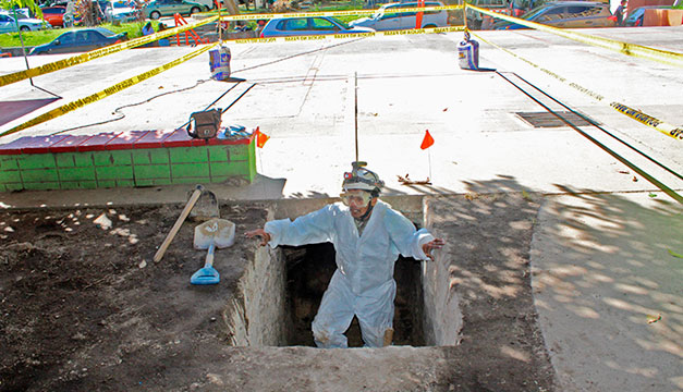 El especialista explicó que la mañana de hoy se determinará si la fosa donde habrían sido enterrados los dirigentes universitarios del movimiento político Frente Universitario Salvador Allende (Fuersa), está bajo la plaza Salvador Allende de la Facultad de Medicina.