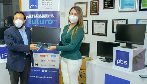 Grupo PBS El Salvador entregó este miércoles un donativo de seis computadoras que serán destinadas para el hospital temporal de Jiquilisco, en Usulután, que atiende pacientes con coronavirus.