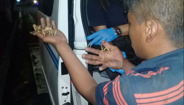 El caso se registró en la zona de San Salvador. Elementos de dicha unidad llegaron hasta el lugar y encontraron al hombre con varias púas insertadas en ambas manos, por lo que le brindaron asistencia médica.