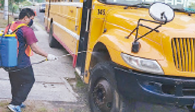 Buses, microbuses, motocicletas y vehículos particulares que ingresaban ayer a la ciudad de San Bartolomé Perulapía, en el departamento de Cuscatlán, fueron sanitizados como parte de una campaña impulsada por la alcaldía municipal ante la emergencia que atraviesa el país por coronavirus.