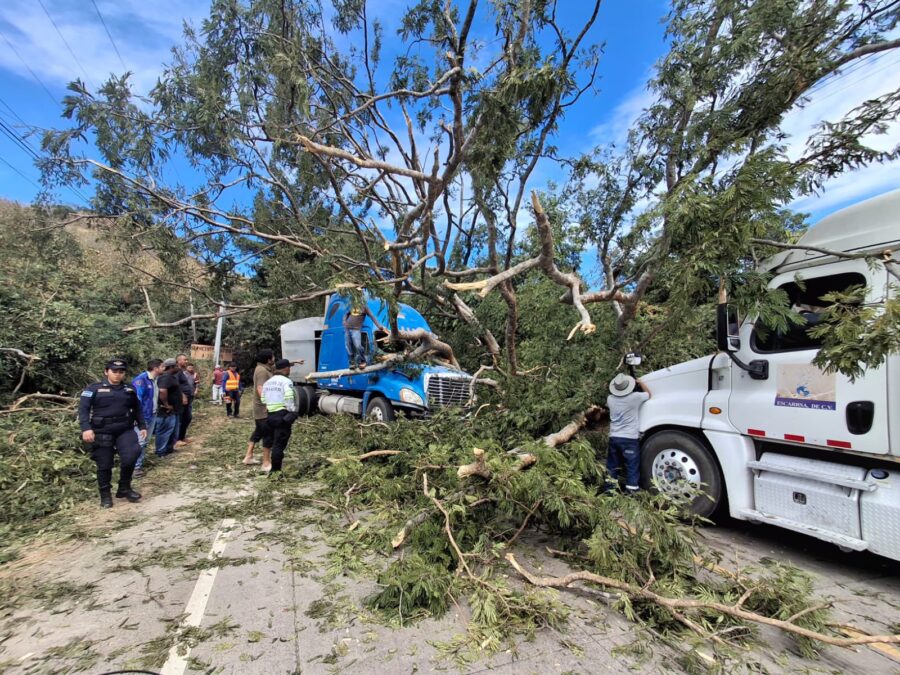 Nacionales Un árbol de gran tamaño cae sobre dos rastras en Texistepeque miércoles 17, diciembre 2025 - 1:26 p. m.