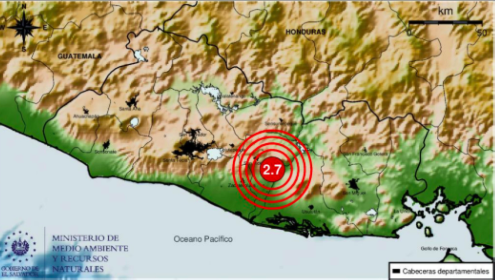 Nacionales Medio Ambiente reporta sismo de 2.7 en San Vicente por fallas locales domingo 23, febrero 2025 - 5:05 p. m.