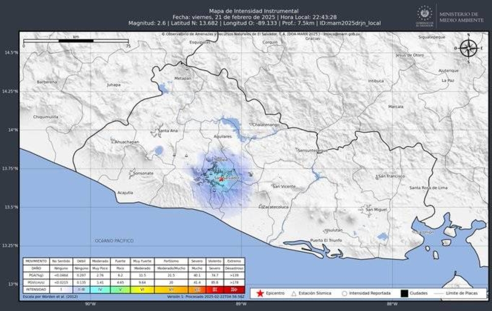 Nacionales Temblor en Ilopango 2.6 grados a 8 kilómetros de profundidad sábado 22, febrero 2025 - 12:11 a. m.