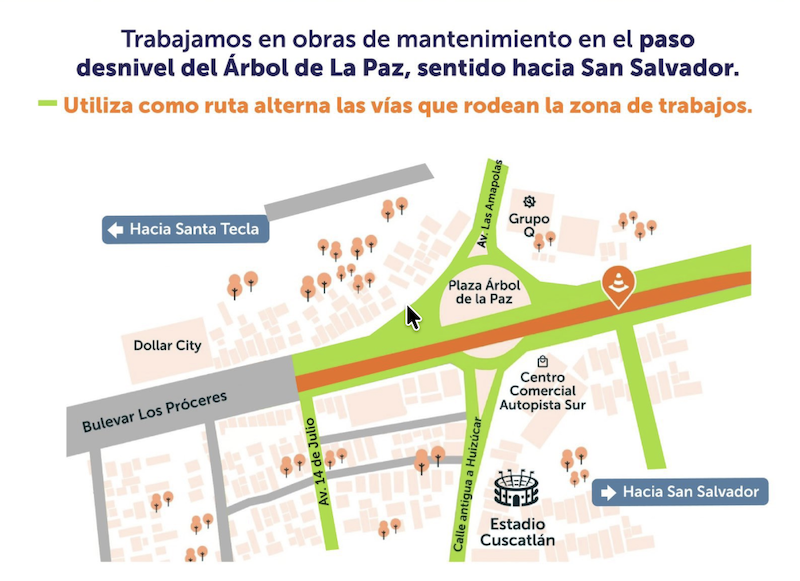Nacionales El paso a desnivel Árbol de La Paz estará cerrado por trabajos de Fovial sábado 17, enero 2026 - 11:02 a. m.