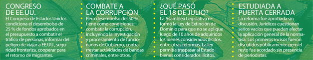 La diplomática señaló que estudian el caso. “Estamos revisando en este momento. Estamos bien claros que hay 16 criterios para recibir los fondos de los Estados Unidos y la lucha contra la corrupción es una de estos criterios y claramente esta nueva reforma es un paso atrás en la lucha contra la corrupción y no muestra la voluntad política para luchar contra la corrupción”, anunció el martes, un día después de que el Diario Oficial de la fecha programada de publicación de la reforma, 24 de julio.