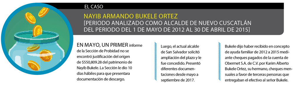 Bukele recibió esta cantidad en concepto de ayuda familiar de 2012 a 2015 de acuerdo a declaraciones que dio según las fuentes a Probidad, como parte de la explicación que dio ante el crecimiento patrimonial señalado por esa instancia de la CSJ. Según esas declaraciones, dicen las fuentes, los cheques por Karim Alberto Bukele Ortez se reportaban como ayuda familiar.