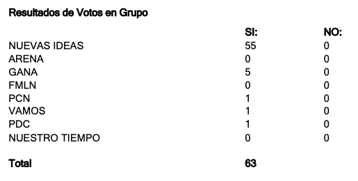 La diputada Pineda de Navas fue una de las cinco diputadas de Gran Alianza por Unidad Nacional (GANA) que votó por el decreto 90, que recibió un total de 63 votos.