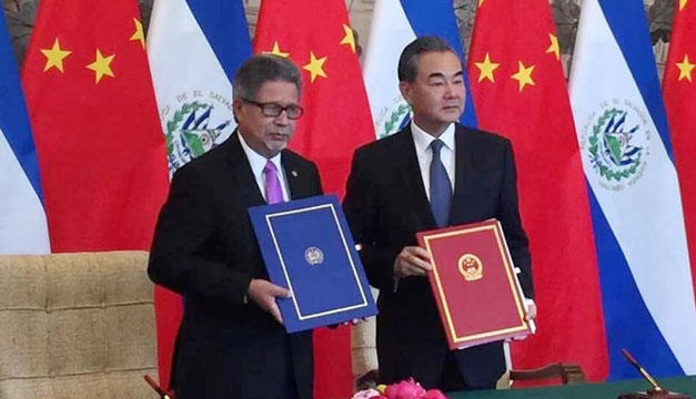 Sánchez Cerén anunció en su mensaje que en ese momento el canciller salvadoreño Carlos Castaneda, el primer designado presidencial y secretario general del FMLN, Medardo González, y el secretario de asuntos legislativos y jurídicos de la Presidencia, Rubén Alvarado, estaban en misión oficial para anunciar la firma de un comunicado conjunto sobre el establecimiento de las relaciones diplomáticas con la República Popular China. “Este es un paso a la dirección correcta, permitirá grandes beneficios para el país y brindará oportunidades a nivel personal a cada uno de ustedes”, afirmó Sánchez.