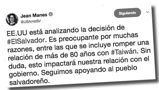 La decisión recibió ayer críticas. La embajadora de los Estados Unidos, Jean Manes, anunció que esto “impactará” la relación de Estados Unidos con el gobierno de El Salvador.