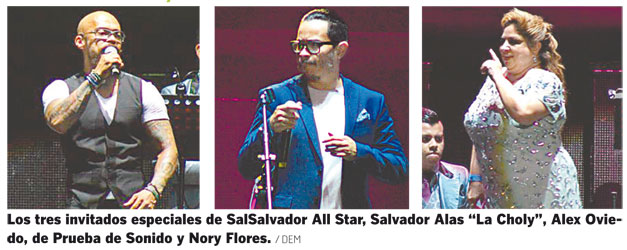 Los teloneros tuvieron invitados especiales. El público se emocionó cuando en escena apareció Nory Flores de la Internacional Orquesta de los Hermanos Flores, cantando los éxitos cumbieros “Mi país”, “Enfermera”, “Salvadoreñas” y “La Bala”, en género salsa. Lo mismo ocurrió con el emblemático tema de Prueba de Sonido “Hacer nuestro el universo” que interpretó Alex Oviedo. El gran cierre estuvo a cargo de Salvador Alas, mejor conocido como La Choly, que interpretó la canción “Creo en ti”.