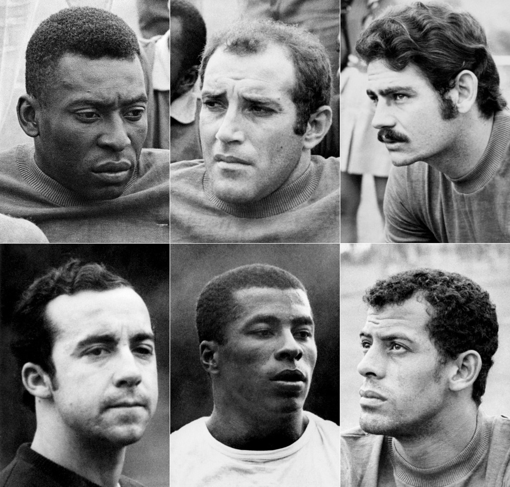 En esta combinación de fotografía de archivo creada el 10 de junio de 2020, se muestran a los jugadores brasileños en la ciudad de México antes de la apertura de la Copa Mundial (desde la parte superior L hacia abajo R) hacia adelante Pelé, el 31 de mayo de 1970, el centrocampista Gerson en mayo 29, 1970, el delantero Roberto Rivelino el 29 de mayo de 1970, el delantero Tostao el 29 de mayo de 1970, el delantero Jaïrzinhoon el 29 de mayo de 1970 y el defensa Carlos Alberto el 29 de mayo de 1970./AFP.