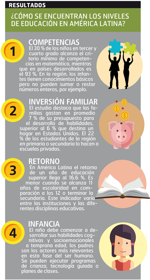 Este martes, en BID lanzó su última edición del informe “Aprender mejor: políticas públicas para el desarrollo de habilidades”, donde se destaca que, en los últimos 25 años, la región aumentó en tres puntos del Producto Interno Bruto (PIB) su inversión en educación, un promedio cercano a lo destinado por países desarrollados, quienes gastan alrededor del 5 % del PIB en este rubro.
