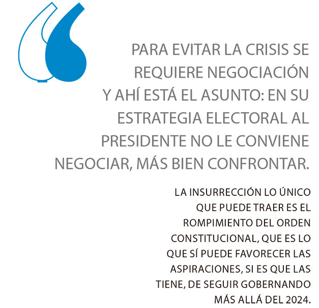 Es lo que le dije, por eso es delicado porque, al cumplir el mandato, uno podría pensar que habría problemas con el ministro de Defensa, con el director de la Policía, no sé si con el de Seguridad también, podría llegar hasta el Presidente, eso plantearía una situación, se lo planteé, el pueblo y el Presidente contra las instituciones que están cumpliendo su rol. Lo que pasa es que cumplir en estas condiciones puede generar un resultado que socialmente no es aceptable. La mayor parte de la sociedad pareciera ser que no quiere que se le dañe al Presidente. Entonces, es una situación que no sé cómo se va a resolver.
