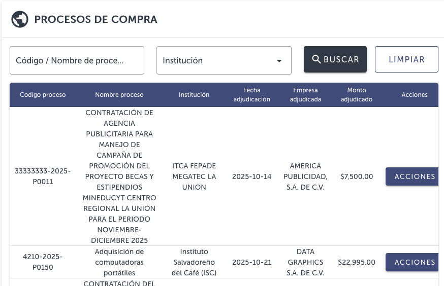 La organización Acción Ciudadana (AC) verificó que Comprasal, el sistema electrónico de compras públicas de El Salvador, nuevamente ha puesto al acceso público las contrataciones adjudicadas por las instituciones del Estado, pero considera que la información es incompleta.