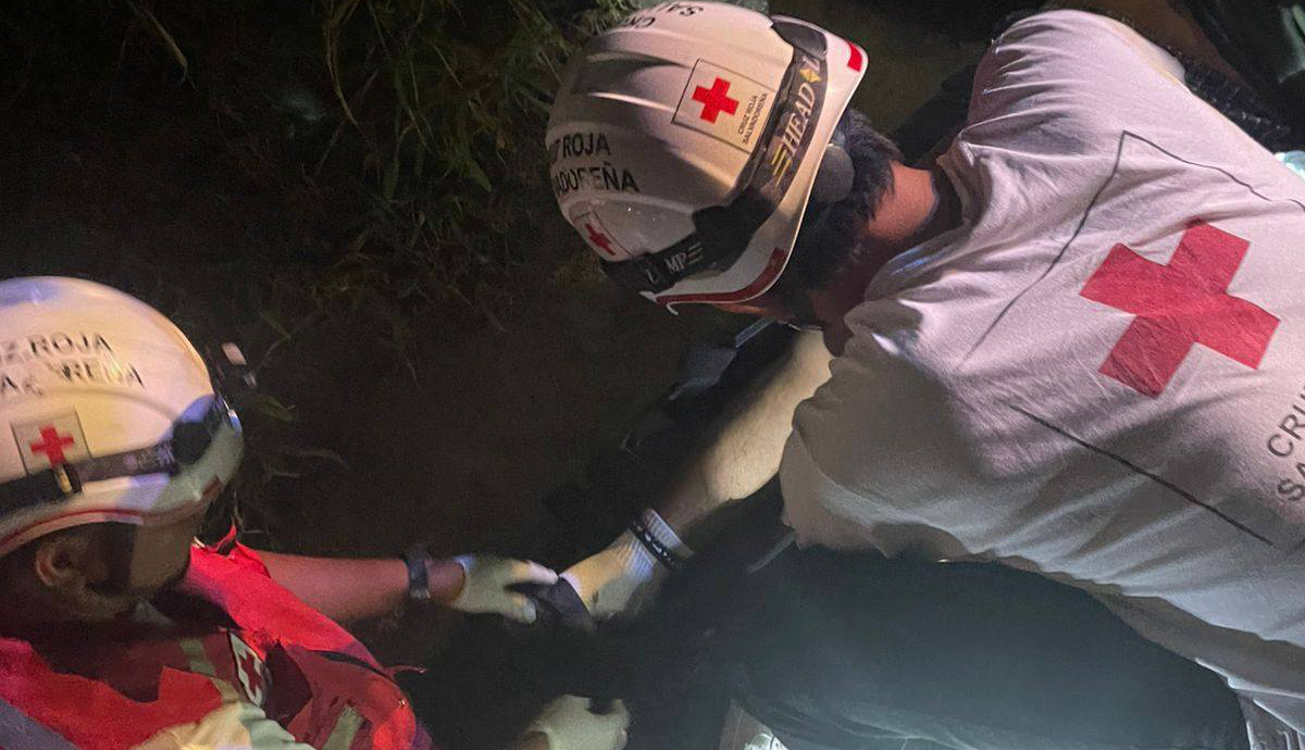 En la Troncal del Norte una pareja de motociclistas se accidentó en el desvío de La Cabaña, El Paisnal. /Cruz Roja Seccional Aguilares