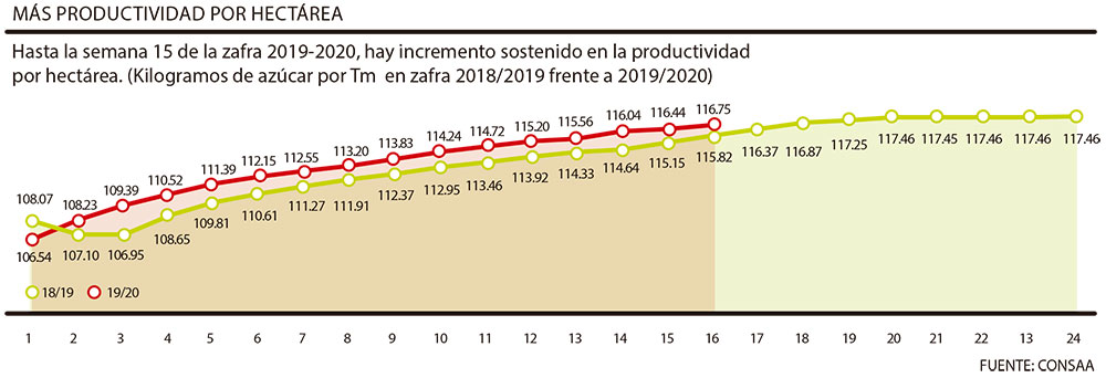 De acuerdo con el CONSAA, el aumento responde al uso de mejores variedades de caña y de labores de riego en las plantaciones, junto con un mejor clima.