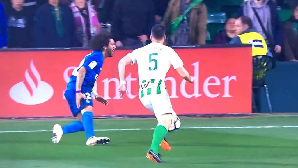 En el minuto 27 del partido celebrado en el Estadio Benito Villamarín de Sevilla, Marcelo notó un 'pinchazo' al tratar de correr hacia una pelota y se dejó caer al suelo.