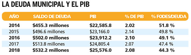 El informe señala que para infraestructura vial las alcaldías utilizaron un 7.2 % de sus nuevas deudas, equivalentes a $6.8 millones; un 7.2 % para proyectos de electrificación rural y urbana; y un 2 % o $1.9 millones para proyectos de desarrollo económico. Esta nueva deuda adquirida en 2018 por las alcaldías fue suscrita con tasas de interés entre 8.9 % y 11.5 %, y plazos entre 50 y 180 meses, según el estudio de la Dirección General de Contabilidad Gubernamental del Ministerio de Hacienda.
