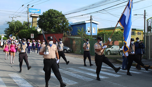 Pese a la suspensión de las actividades escolares y públicas para prevenir más contagios de covid-19, la alcaldía de Antiguo Cuscatlán realizó un desfile de estudiantes junto a Cuerpo de Agentes Metropolitanos para conmemorar el 199 aniversario de la independencia de El Salvador.
