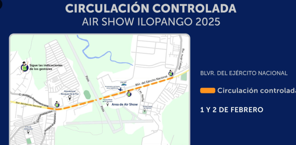El Ilopango Air Show 2025,se llevará a cabo en el aeropuerto Internacional de Ilopango, que abrirá sus puertas a partir de las 10:00 am para los asistentes. En dicho recinto, habrá parqueo para un vehículo cuyo costo es de $3.25.