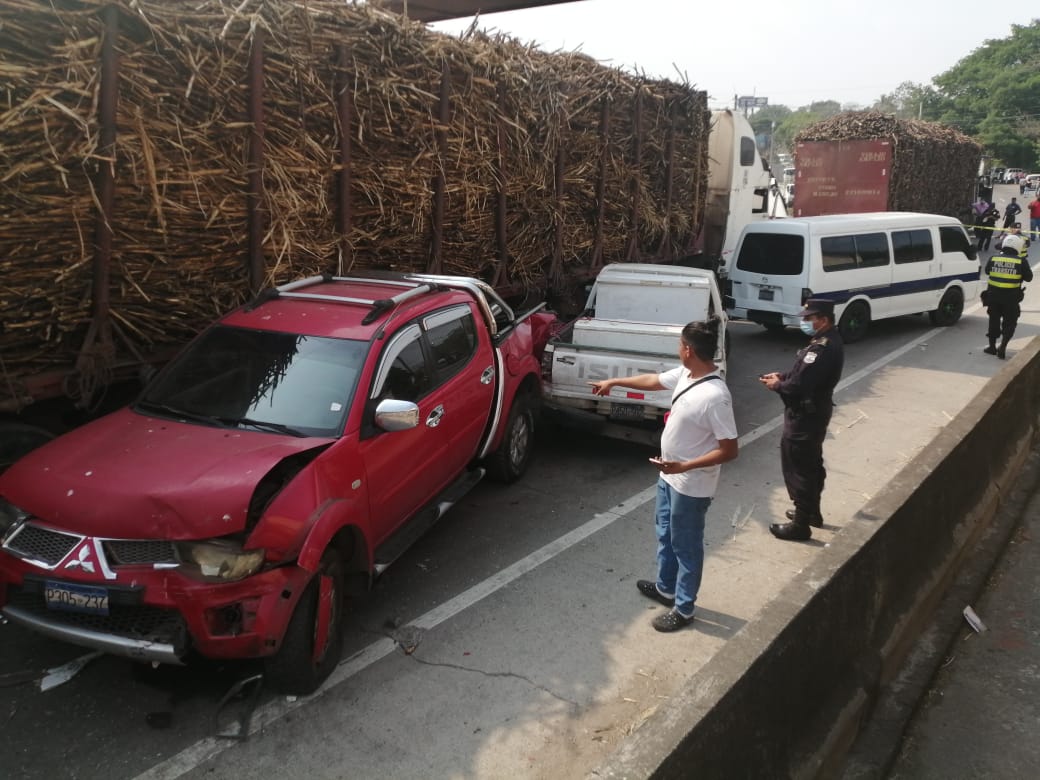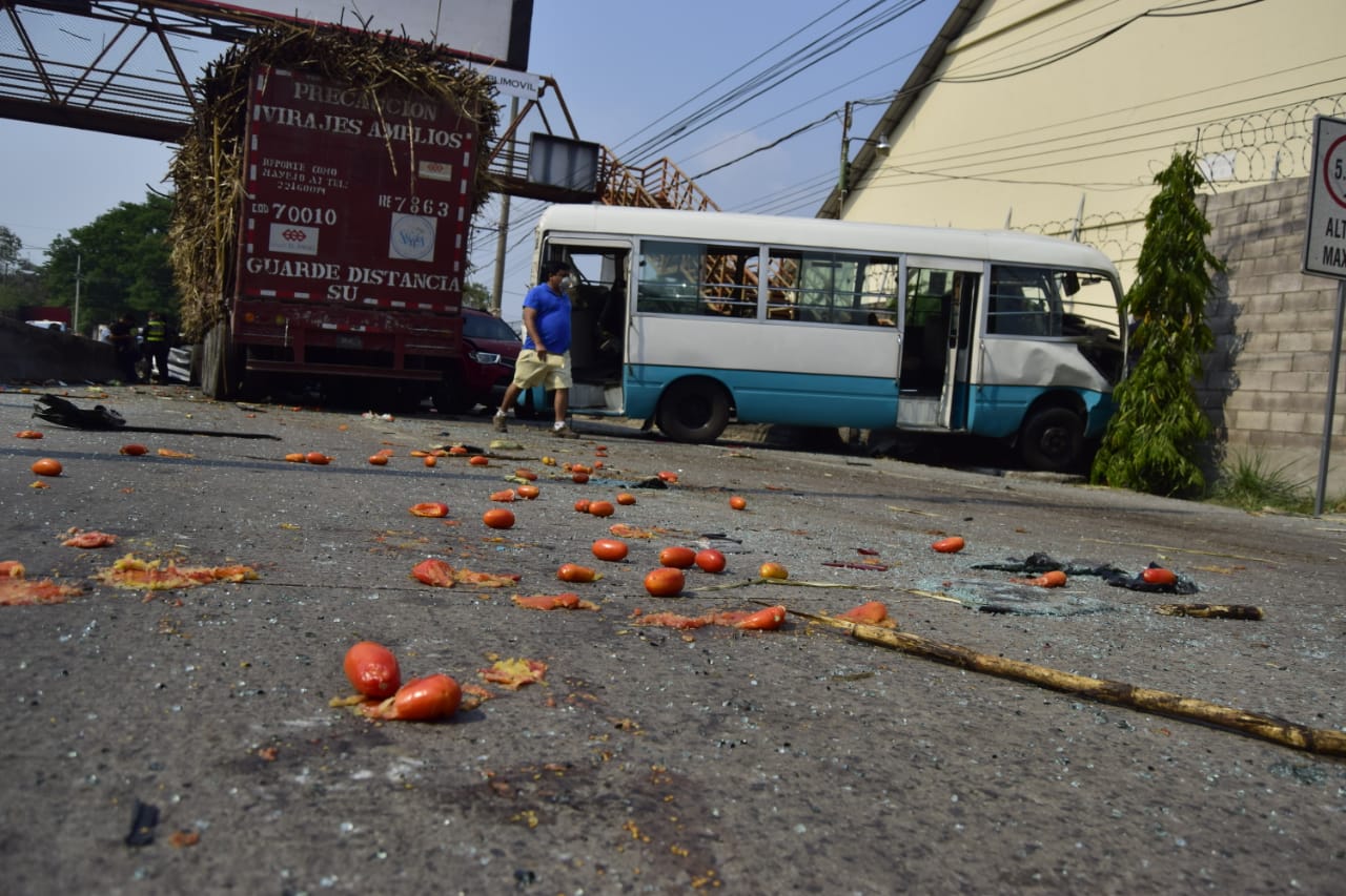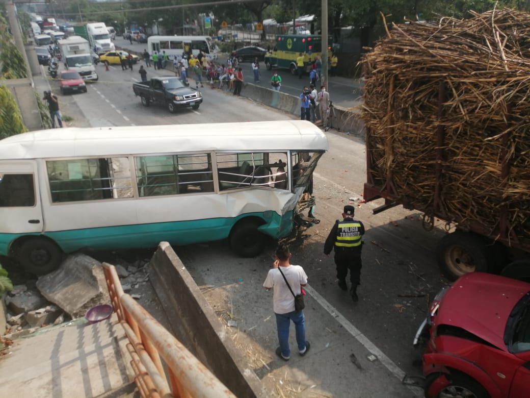 Un aparatoso accidente de tránsito se registró esta tarde en el kilómetro 10 y medio de la carretera Troncal del Norte, en el carril que de San Salvador conduce hacia Apopa.