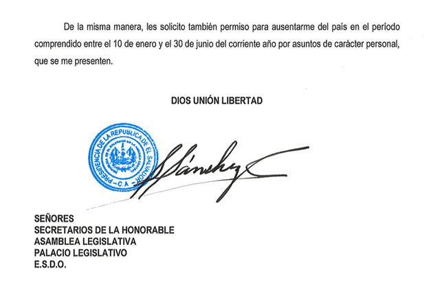 ARENA se  opuso. Su argumento fue que una sentencia de la Sala de lo Constitucional exige que el mandatario pida permiso por cada viaje.