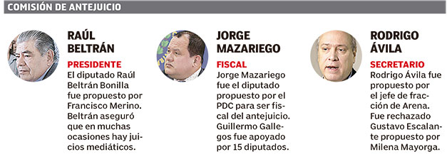 Al final la mayoría de votos decidieron al diputado Jorge Mazariego, del PDC, como fiscal del antejuicio. La comisión también es conformada por los diputados Rodrigo Ávila (Arena), Cristina Cornejo (FMLN), Julio Fabián (Arena) y Jaime Sandoval (FMLN).