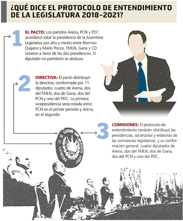 Los titulares de los partidos Alianza Republicana Nacionalista (Arena) y Frente Farabundo Martí para la Liberación Nacional (FMLN) se mostraron ayer abiertos a modificar el pacto que, en mayo de 2018, otorgó la segunda mitad del periodo de la presidencia de la Asamblea Legislativa al Partido de Concertación Nacional (PCN).