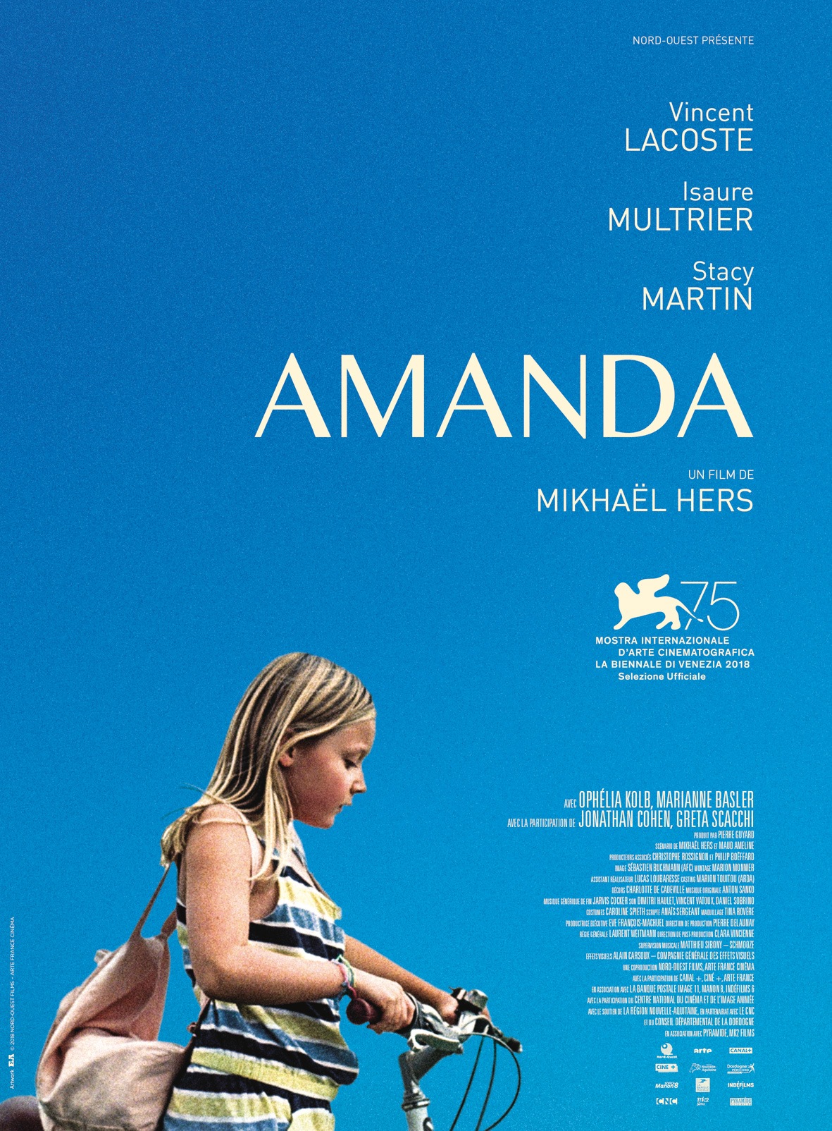 David tiene veinticuatro años y disfruta plenamente de su libertad y soltería, aunque recientemente ha iniciado un romance con Lena, su nueva vecina. Se gana la vida haciendo pequeños trabajos y evita tomar decisiones que lo comprometan seriamente. Todo esto cambia de modo drástico cuando su hermana muere trágicamente en un atentado terrorista en París, y se ve obligado a hacerse cargo de Amanda, su sobrina de siete años. El sexto largometraje del parisino Hers es un drama intenso protagonizado por Vicent Lacoste, Isaure Multrier y Stacy Martin. Por Amanda su director ganó el Premio Linterna Mágica en el Festival de Venecia 2018 y tuvo dos nominaciones a los Premios César en Francia, en las categorías de Mejor Actor (Vicent Lacoste) y Mejor Música Original (Anton Sanko).