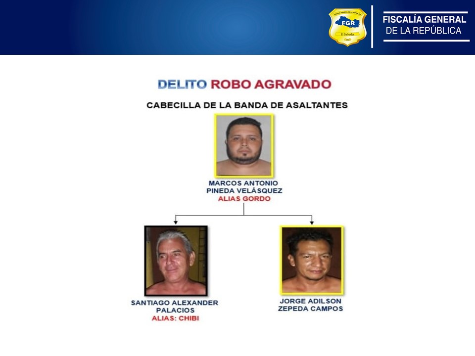 La FGR confirmó que en Sonsonate se ordenó la captura de una banda acusada de robo agravado y privación de libertad. Entre los detenidos está Marcos Antonio Pineda, quien era el supuesto jefe de la estructura de asaltantes que cometía los delitos en el mismo departamento