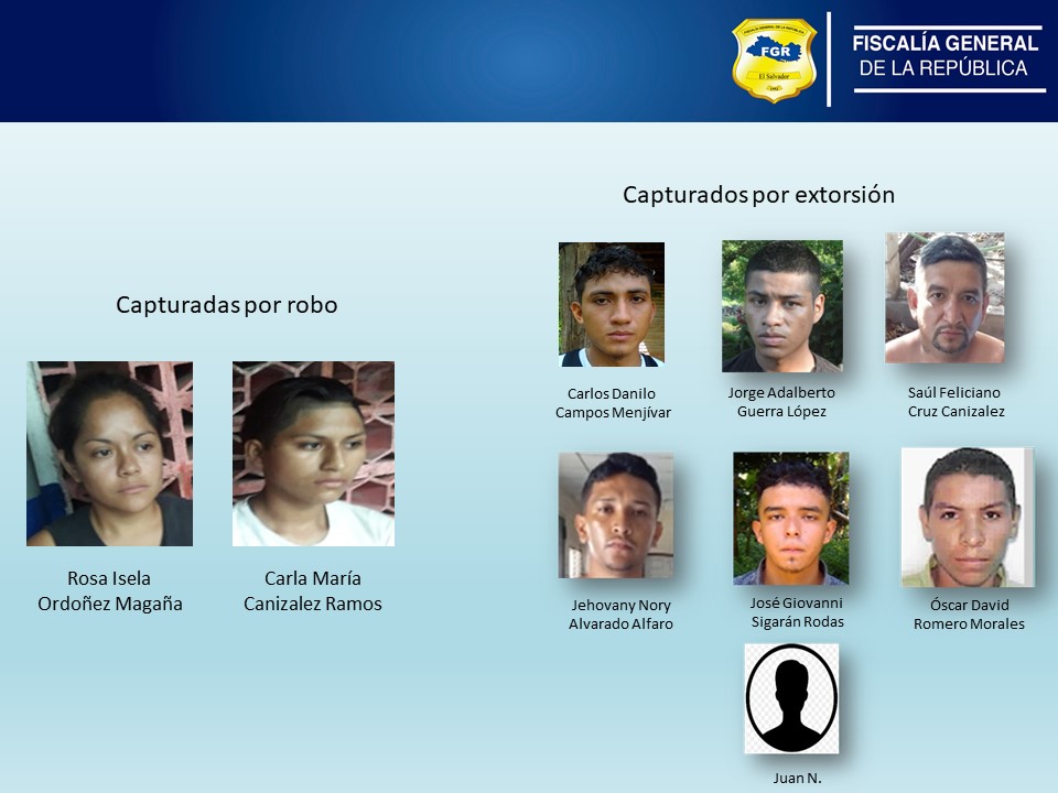 Además, la Fiscalía ordenó la detención contra siete sujetos acusados del delito de extorsión y dos mujeres acusadas de robo. Los hechos ocurrieron el pasado 07 de agosto de este año, según las autoridades.
