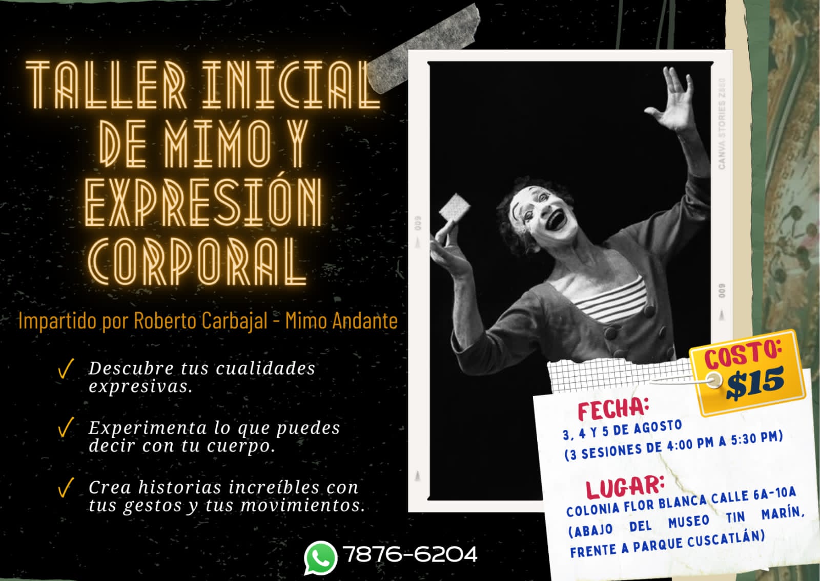 El actor y mimo salvadoreño Roberto Vladimir Carbajal invita a participar de su taller sobre mímica.